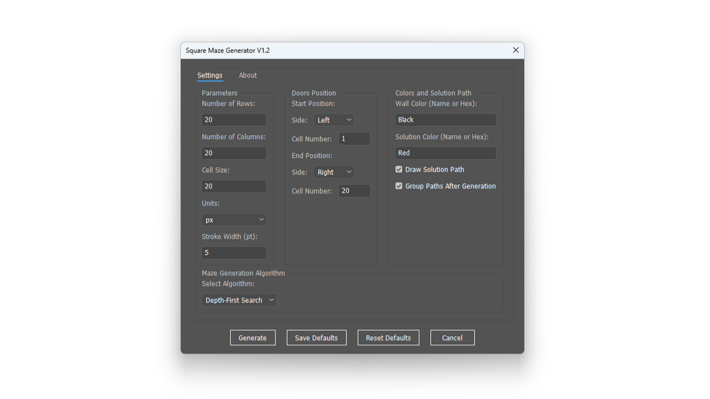 Square Maze Generator V1.2 - Adobe Illustrator Script